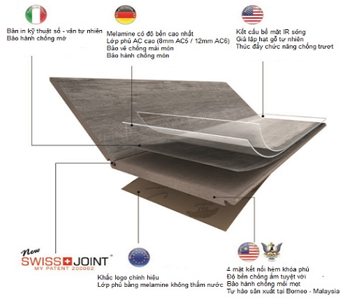 Điểm đặc biêt đó là nguyên liệu để sản xuất sàn gỗ đều được nhập khẩu từ Châu Âu và gỗ rừng Malaysia tạo nên một sản phẩm có chất lượng tốt theo tiêu chuẩn Châu Âu, phù hợp với điều kiện thời tiết của Việt Nam và an toàn cho sức khỏe con người.
